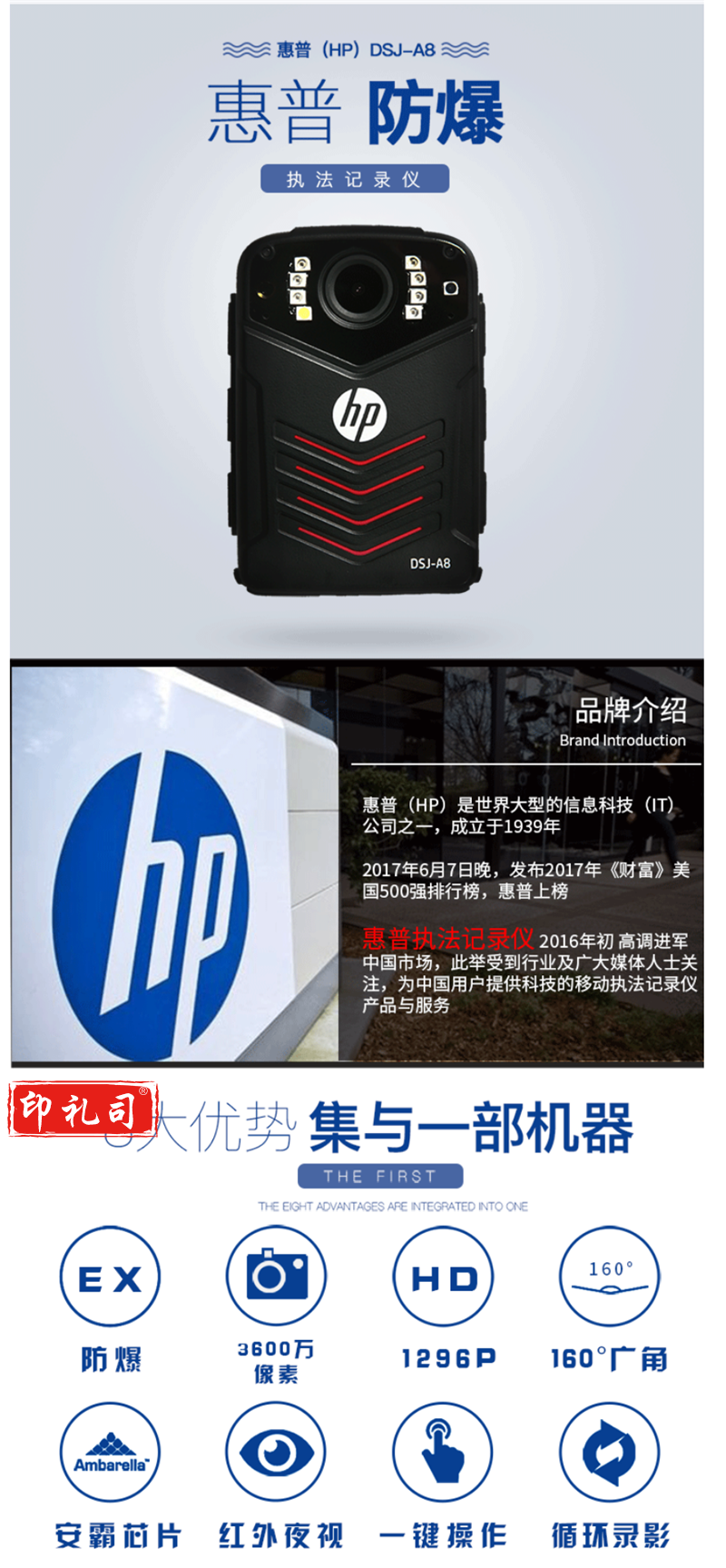 惠普(HP)DSJ-A8 执法记录仪3600万高清记录仪1296P防爆现场记录仪 官方标配128G