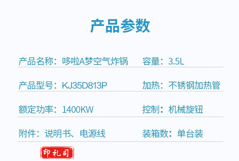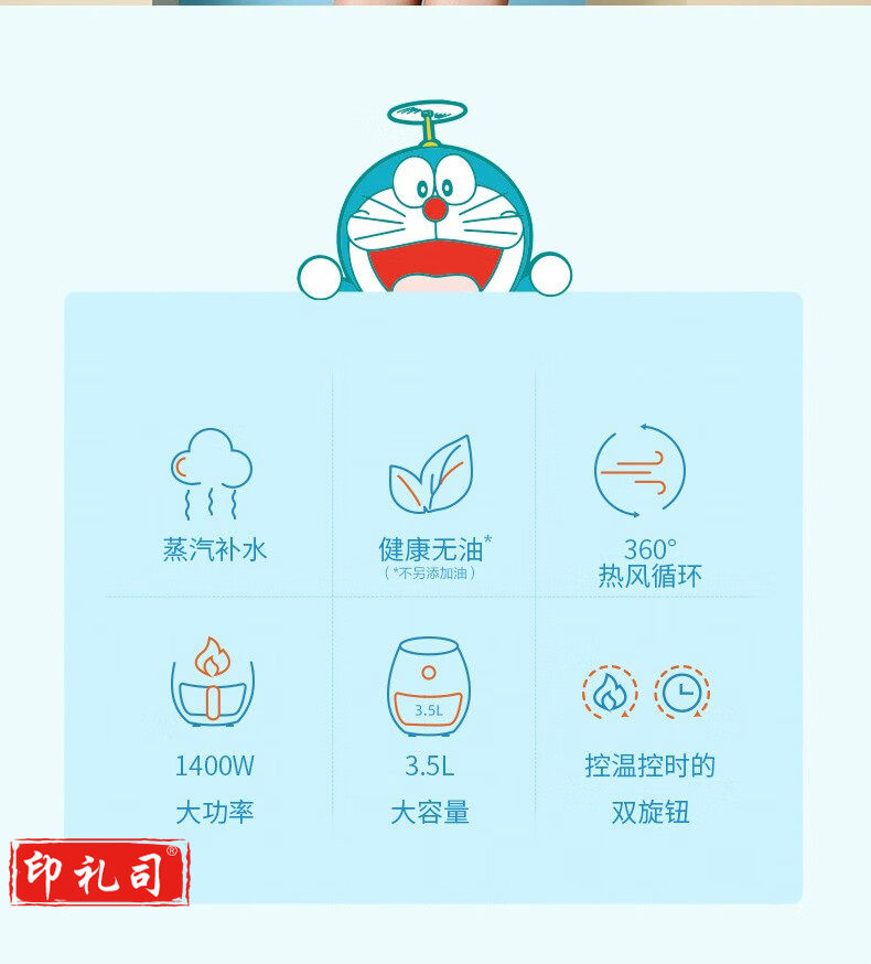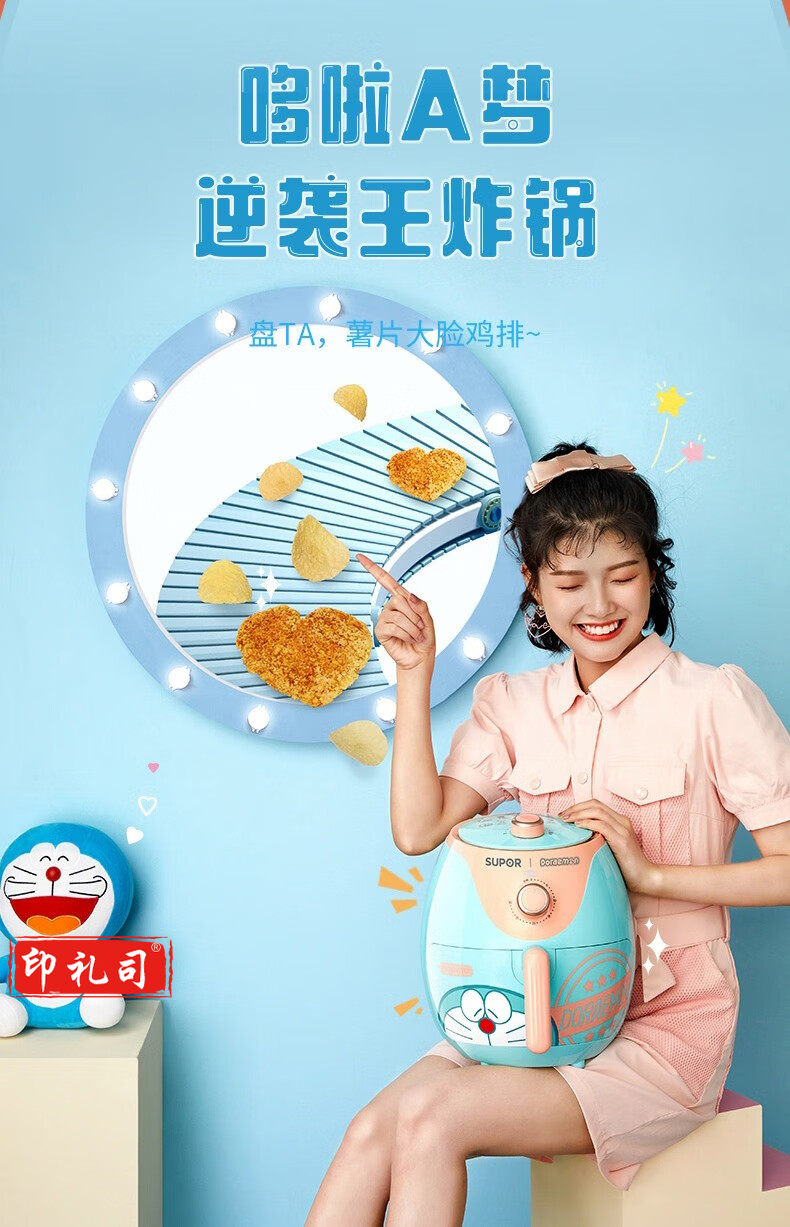 苏泊尔KJ35D813P 哆啦A梦联名空气炸锅 3.5L多功能全自动无油炸锅蒸汽嫩炸