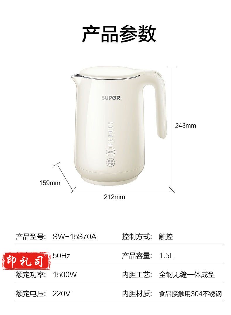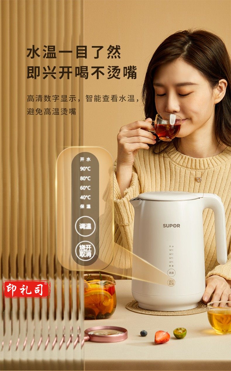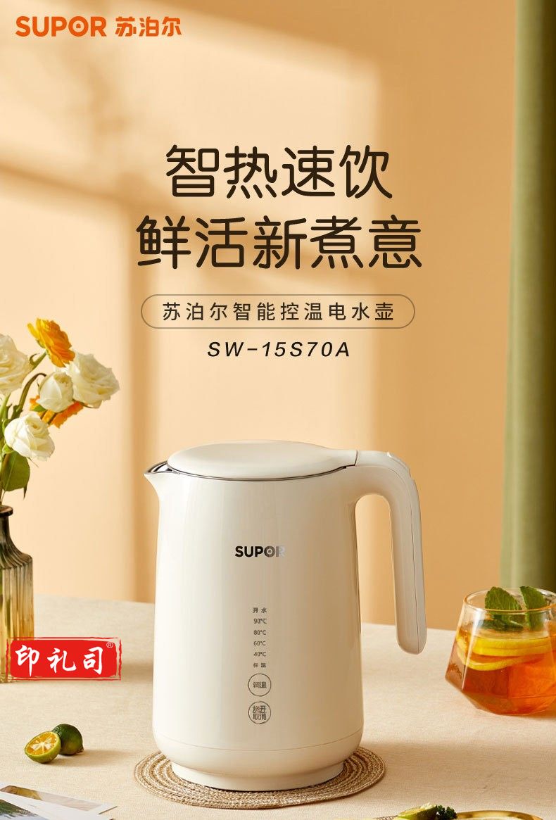 苏泊尔SW-15S70A 1.5L 壶身显温 ZMD安心系列 五段调温 双钢防烫保温 STRIX温控器 电水壶
