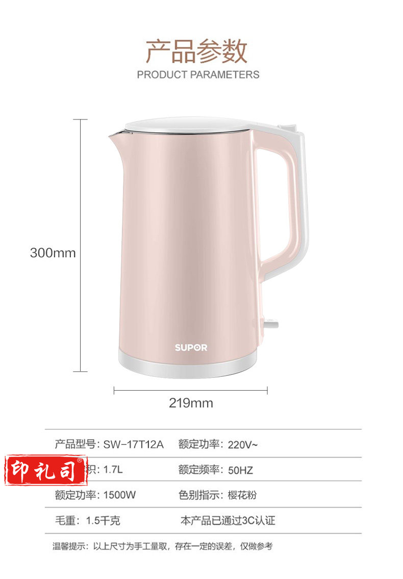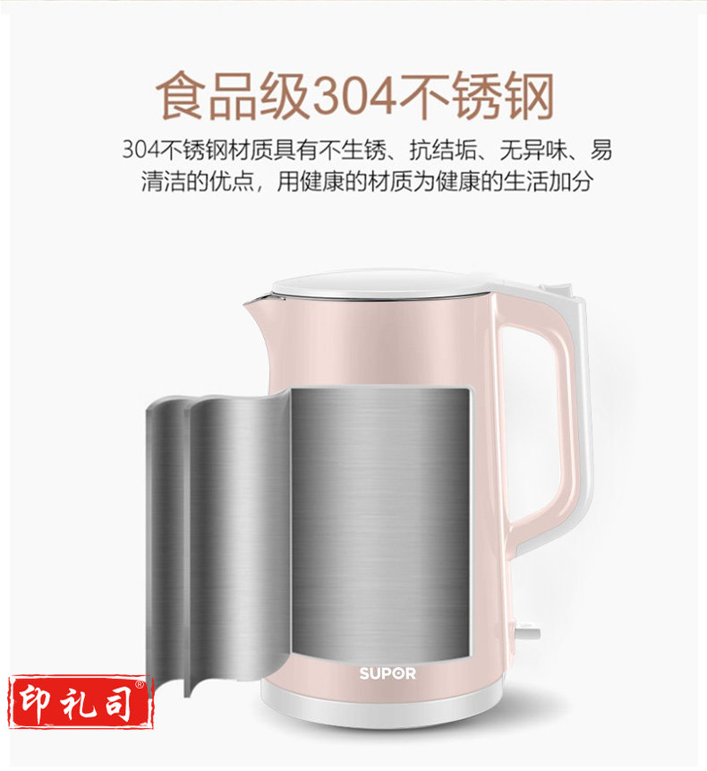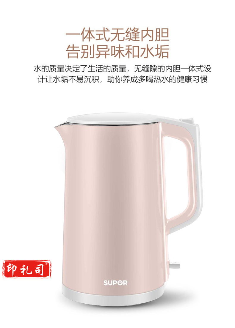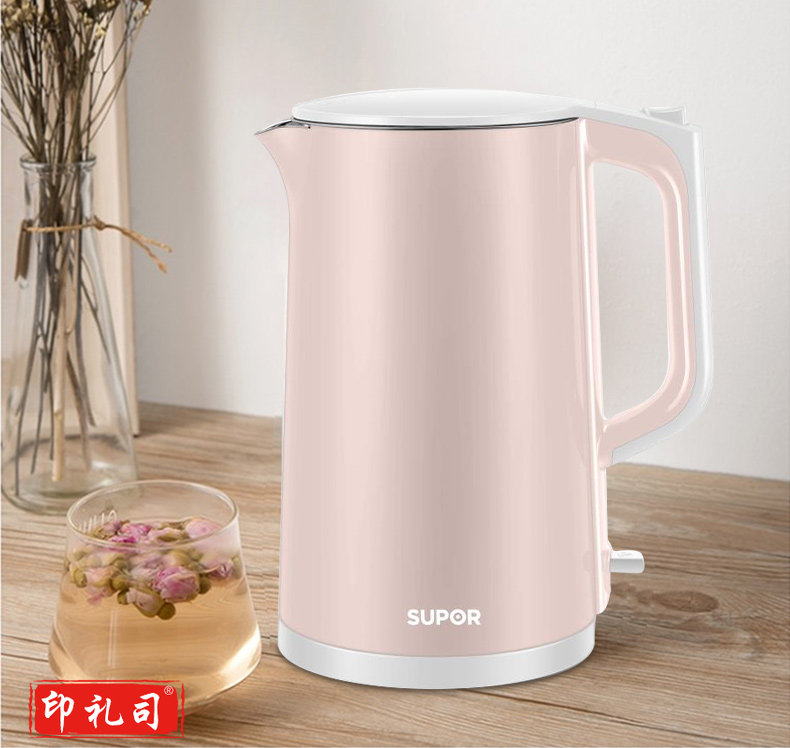 苏泊尔SW-15S02A 电热水壶家用1.5L大容量自动烧水壶 食品级不锈钢内胆 双层保温防烫