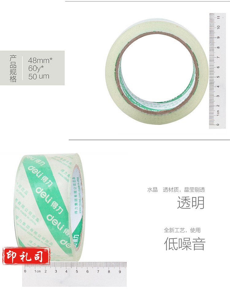 得力 30428 水晶超透低噪音胶带 48mm*60y*50um (单位:卷)