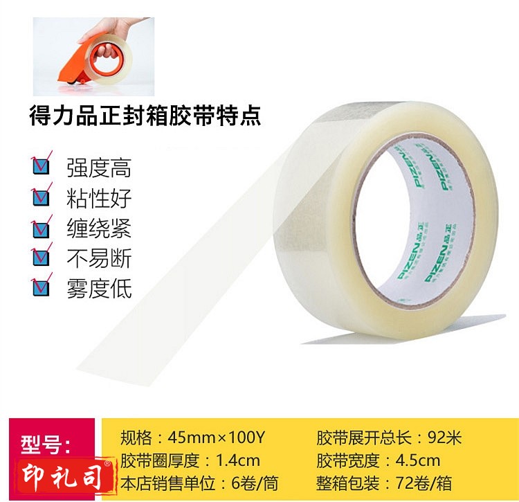 得力 30902 封箱胶带 45mmx100y 6卷/筒 (单位:筒) 透明
