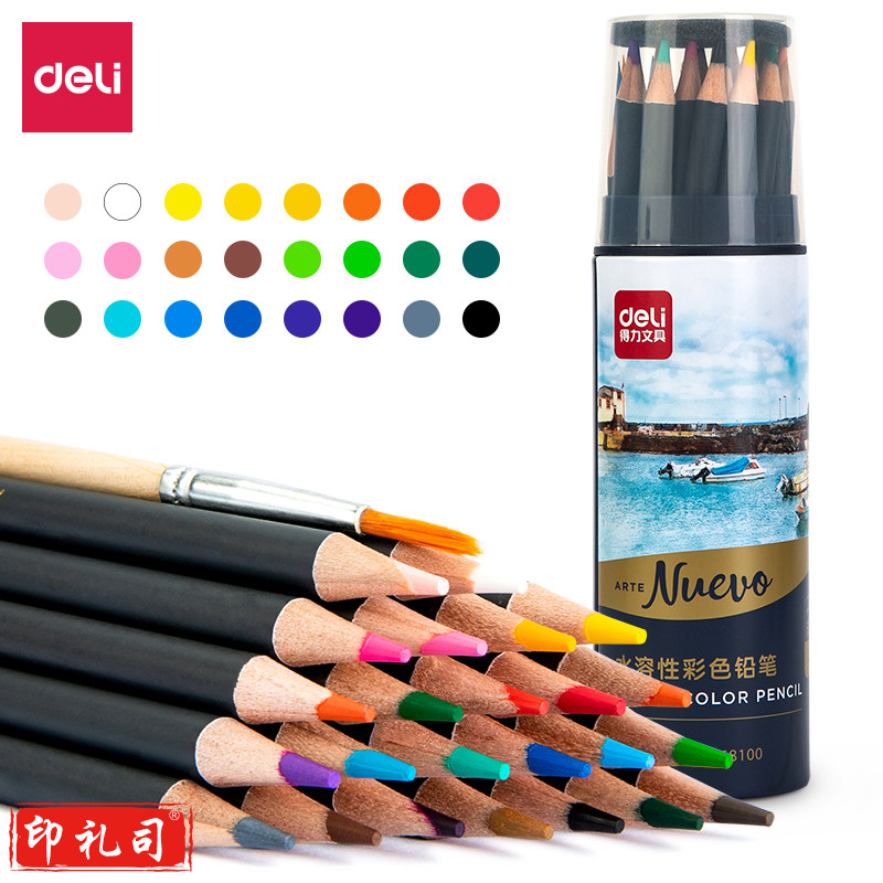 得力68100_24色水溶性彩铅(混)(24色/筒)