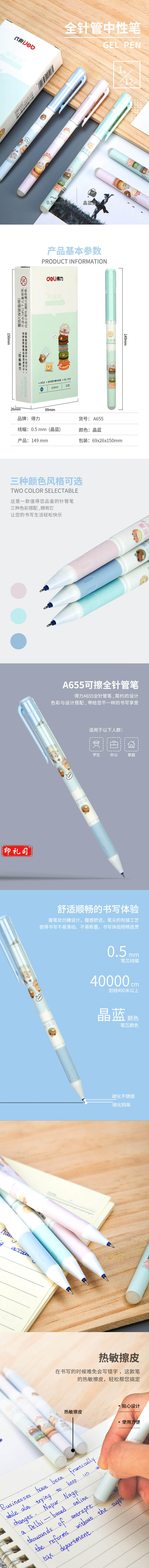得力A653可擦中性笔0得力A655可擦中性笔0.5mm全针管(晶蓝).5mm全针管(晶蓝)