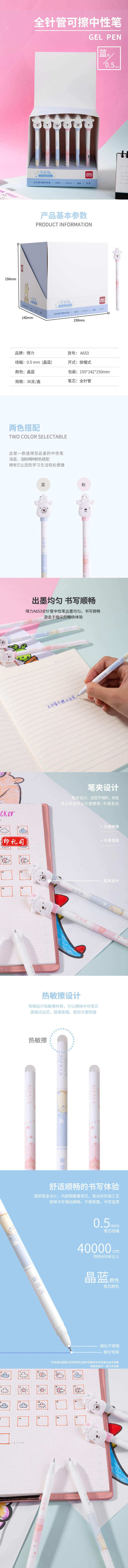得力A653可擦中性笔0.5mm全针管(晶蓝)