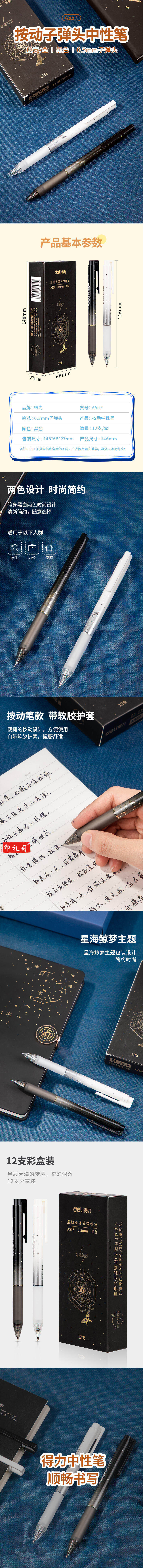 得力A557学生中性笔0.5mm按动子弹头(黑)(支)