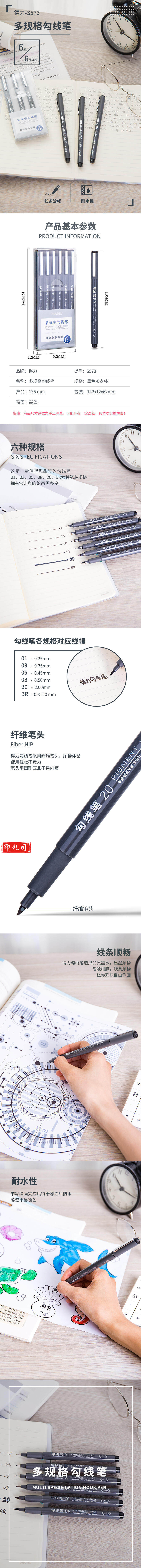 得力S573多规格勾线笔(混)(6支/盒)