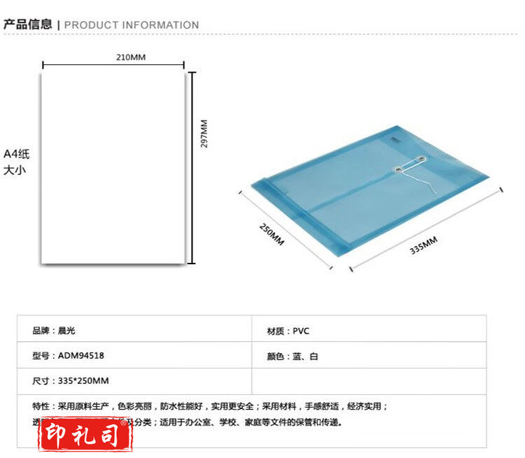 晨光(M&G)ADM94518 A 4竖式线扣档案袋加厚防水PVC 文件袋 12个装/包 白色