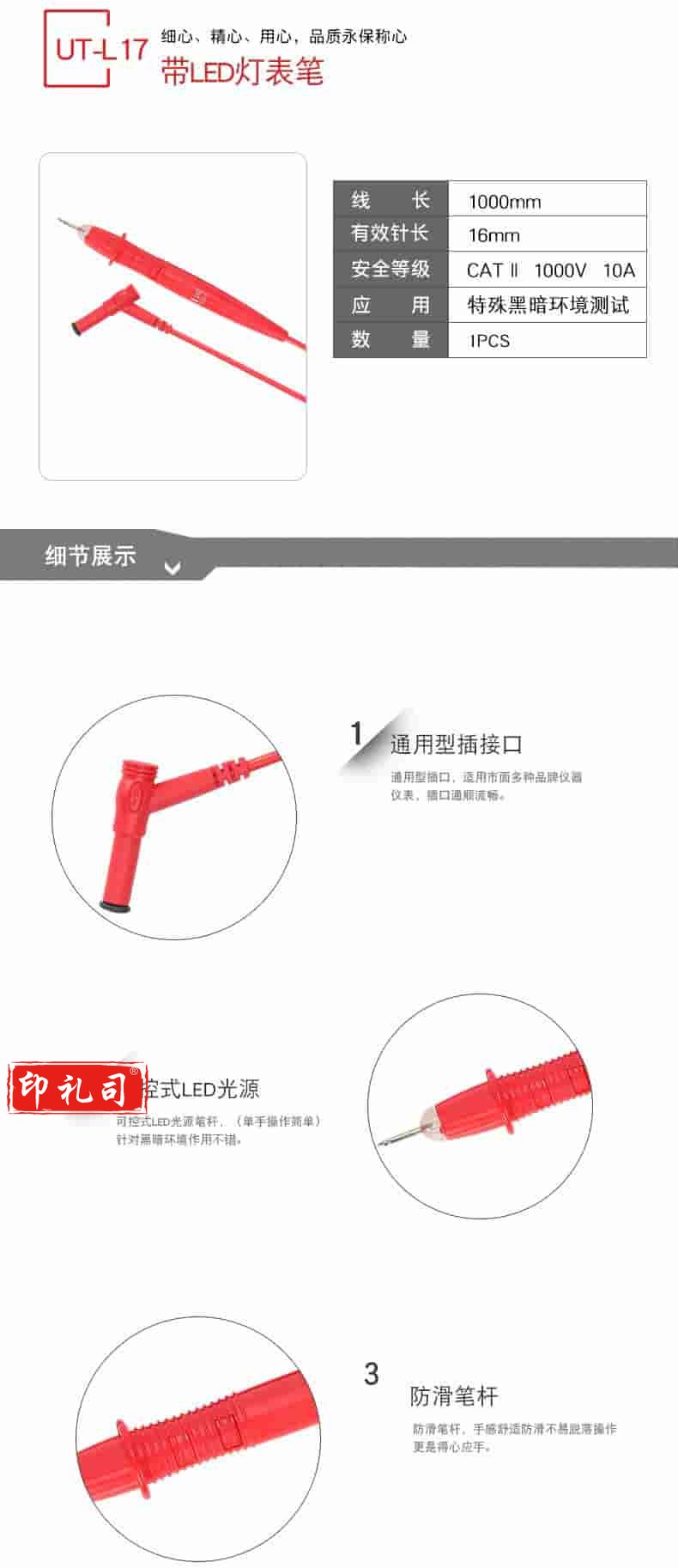 优利德UT-L17带LED灯表笔 通用表笔黑暗环境下适用