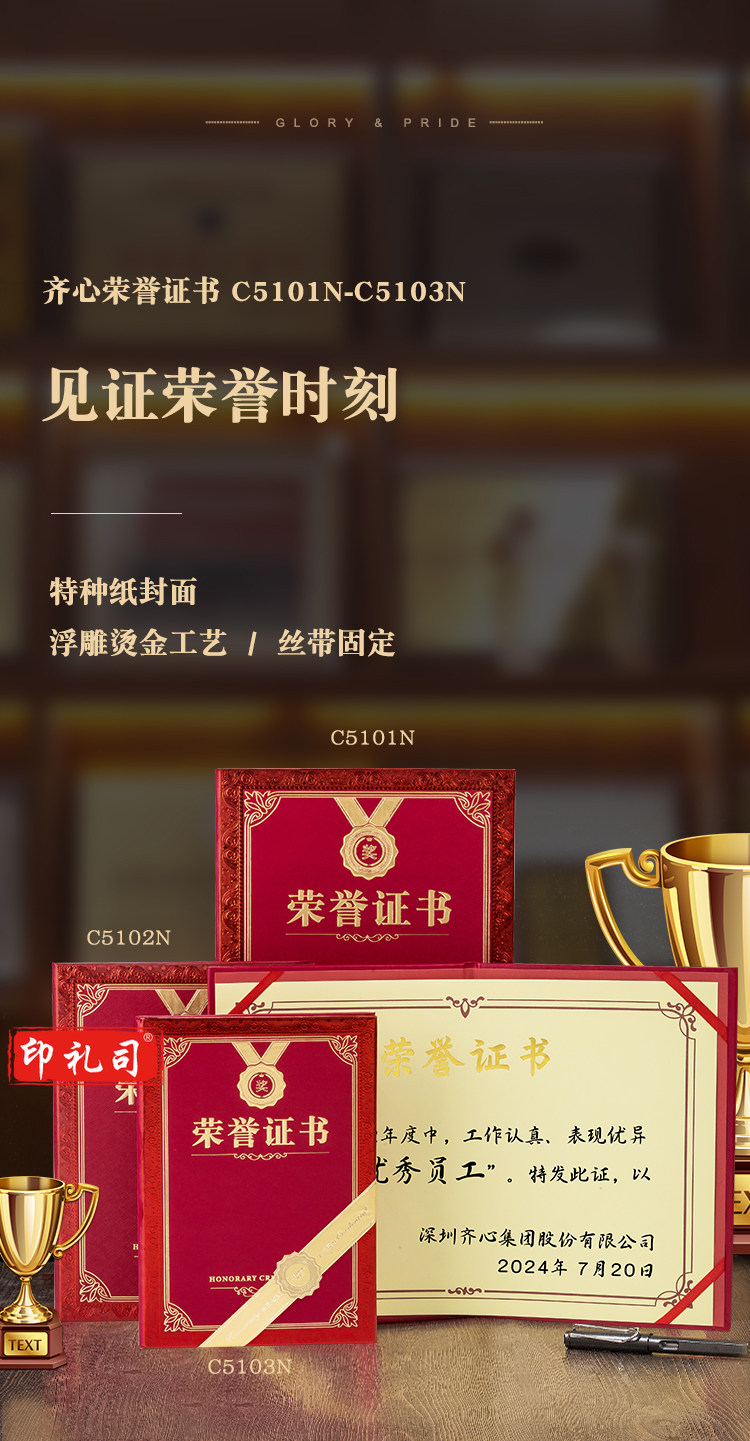 齐心 C5103 荣誉证书 附证书内芯 12K 10本/盒