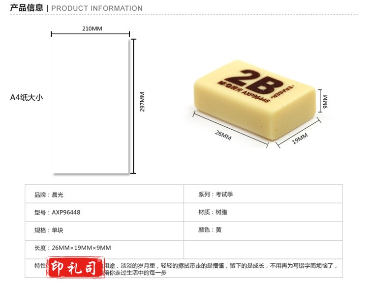 晨光AXP96448 50A橡皮2B(72块/盒)