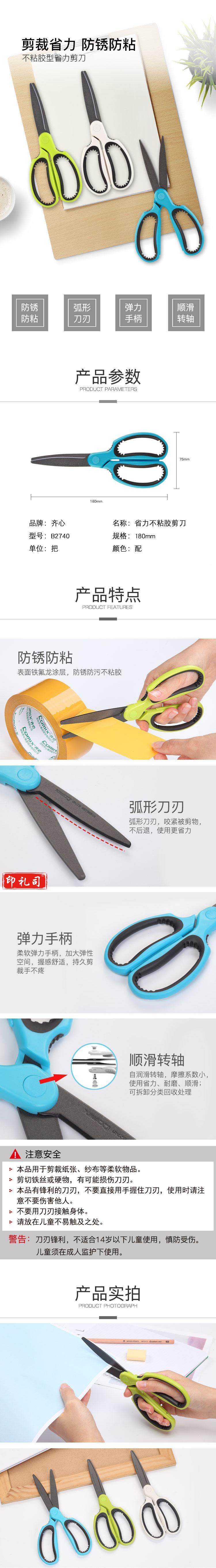 齐心B2740省力剪刀180*75*13mm混色12把/盒