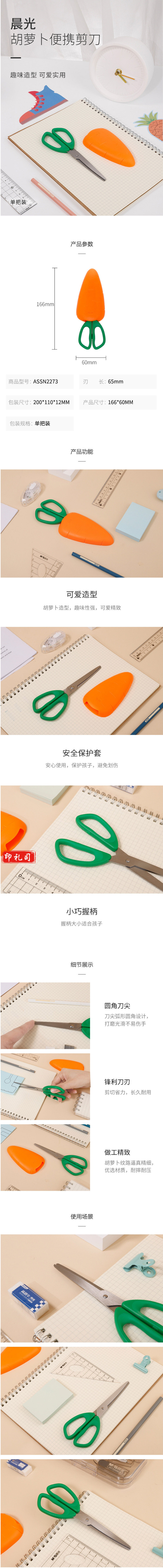晨光ASSN2273 胡萝卜便携剪刀 166mm