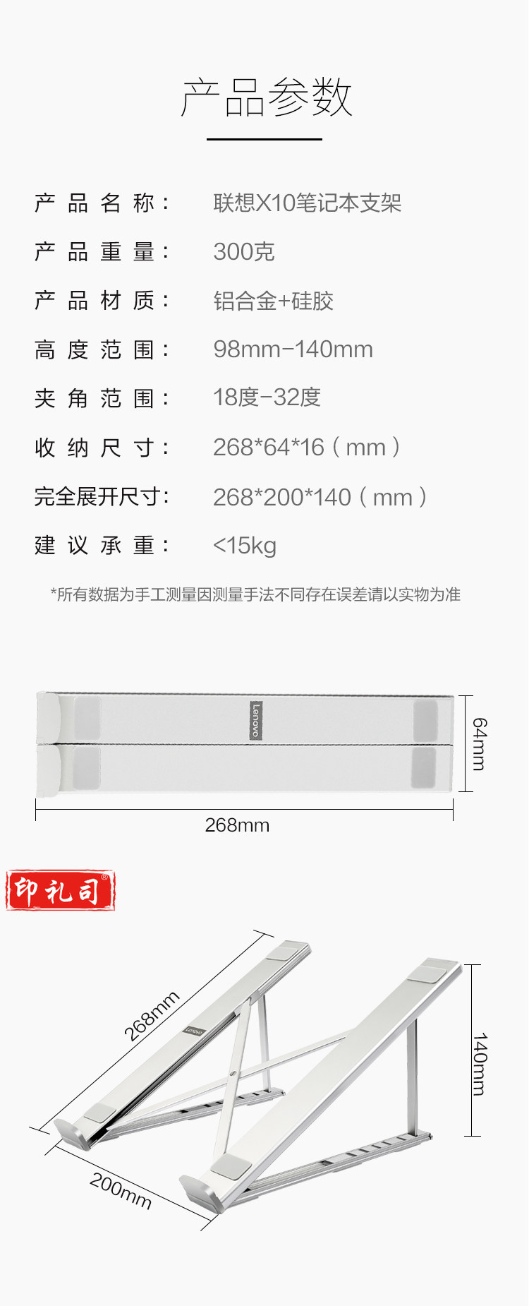 联想X10 笔记本电脑支架 6档调节 小新 拯救者铝合金可折叠笔记本配件