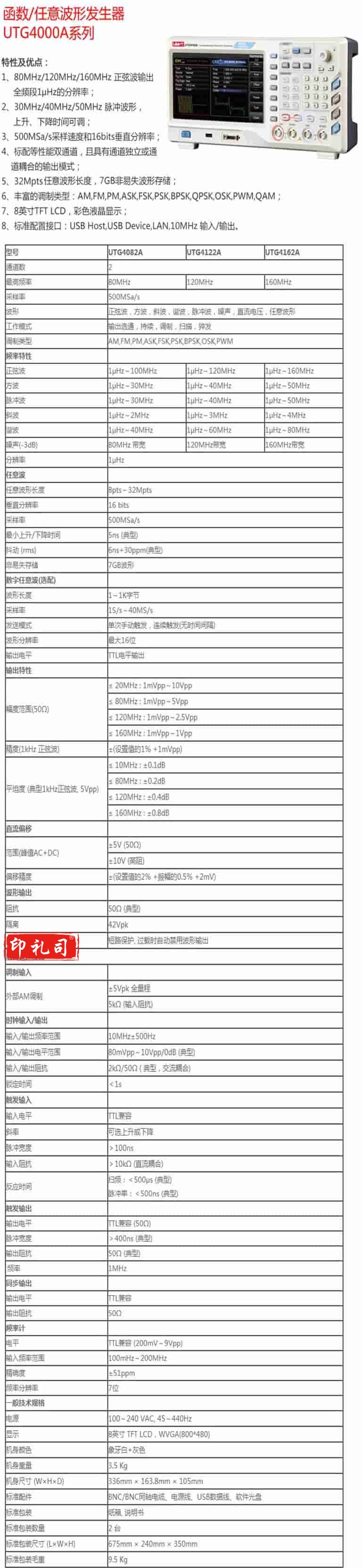 优利德双通道函数信号发生器方波脉冲信号源任意波形发生器频率计 UTG4122A 双通道(120MHz)