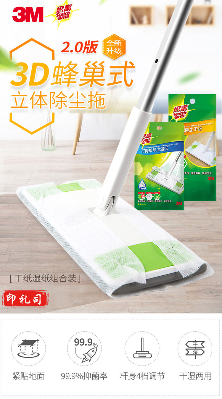 3M 平板拖把X5干湿拖把即用即抛立体除尘套装 轻松洗刷