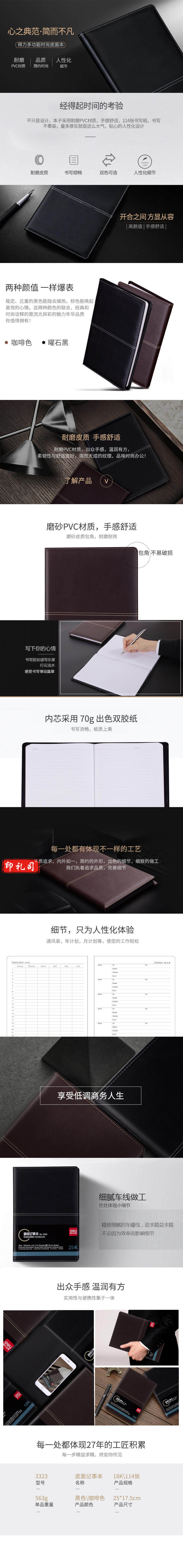 得力3324记事本-25K-205mm*143mm-112张(黑)(本)