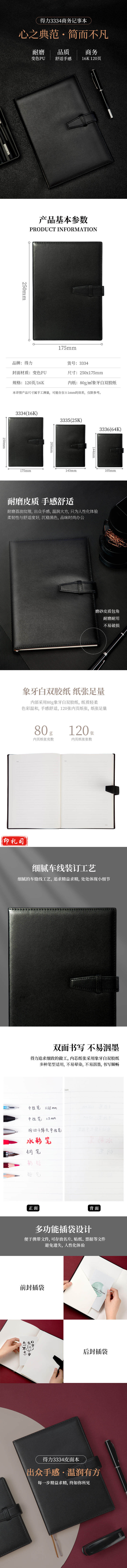 得力3334高级记事本-120张-16K-250mm*175mm(黑)