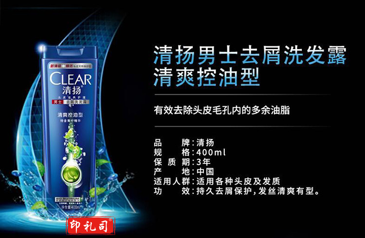 清扬 清爽控油型男士去屑 洗发露 400ml