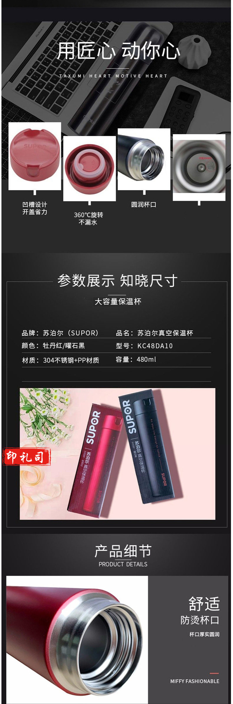苏泊尔KC48DA10 真空保温杯 480ML
