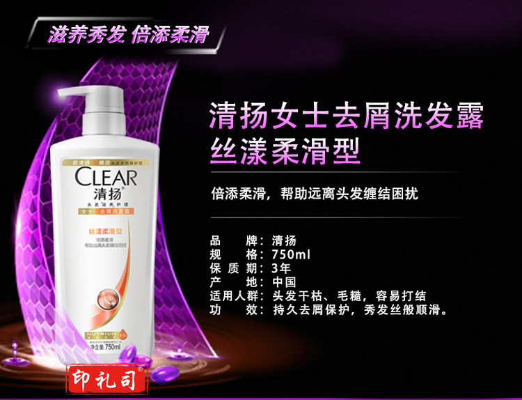 清扬女士去屑洗发露丝漾柔滑型白瓶