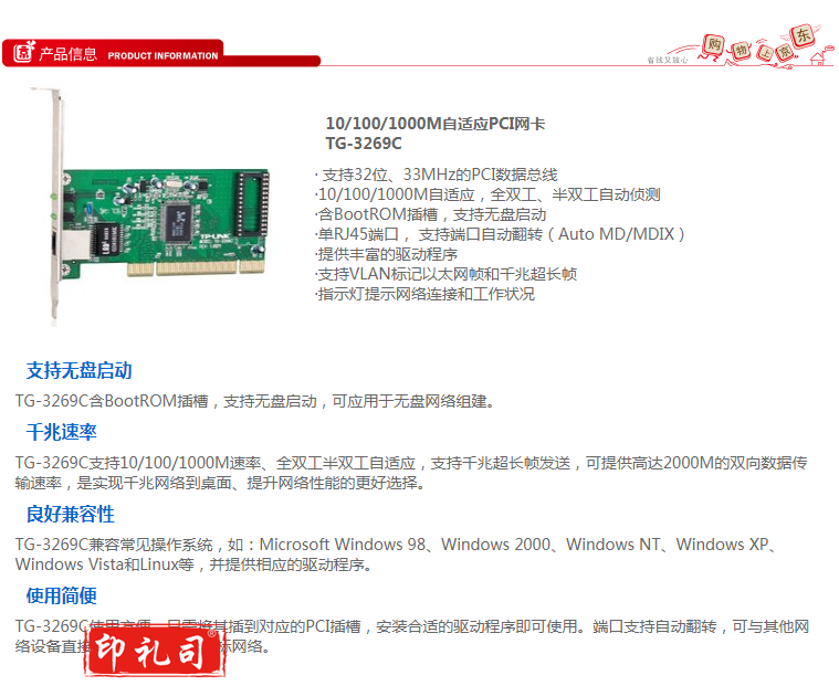 TP-LINK TG-3269C 千兆有线PCI网卡