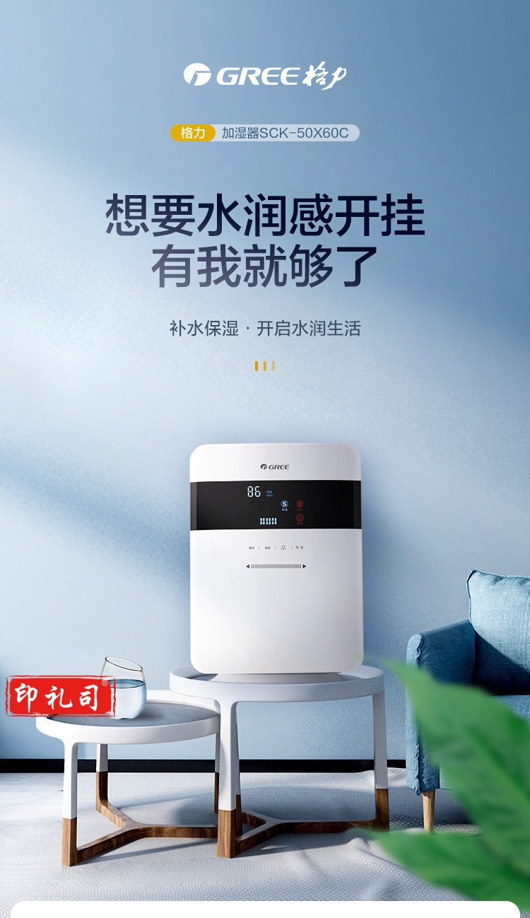 格力(GREE)SCK-50X60C 加湿器 5L大水箱 智能恒湿静音办公室加湿