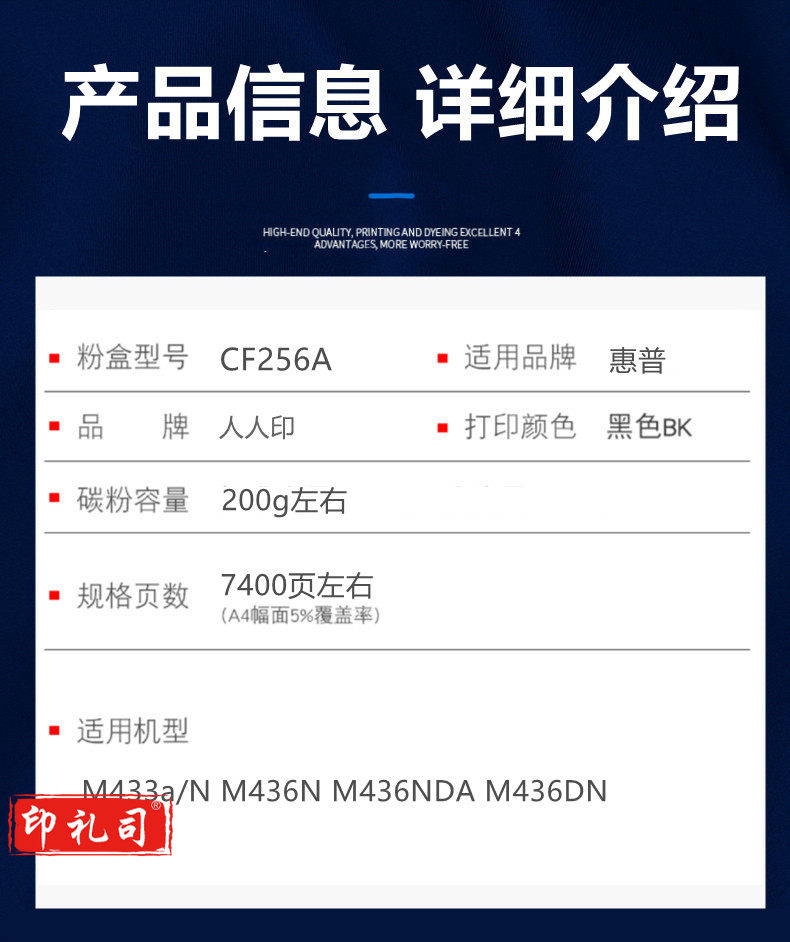 人人印适用hp/惠普m436n粉盒m436dn/nda m433a打印机硒鼓CF257A碳粉墨盒cf256a墨粉LaserJet MFP