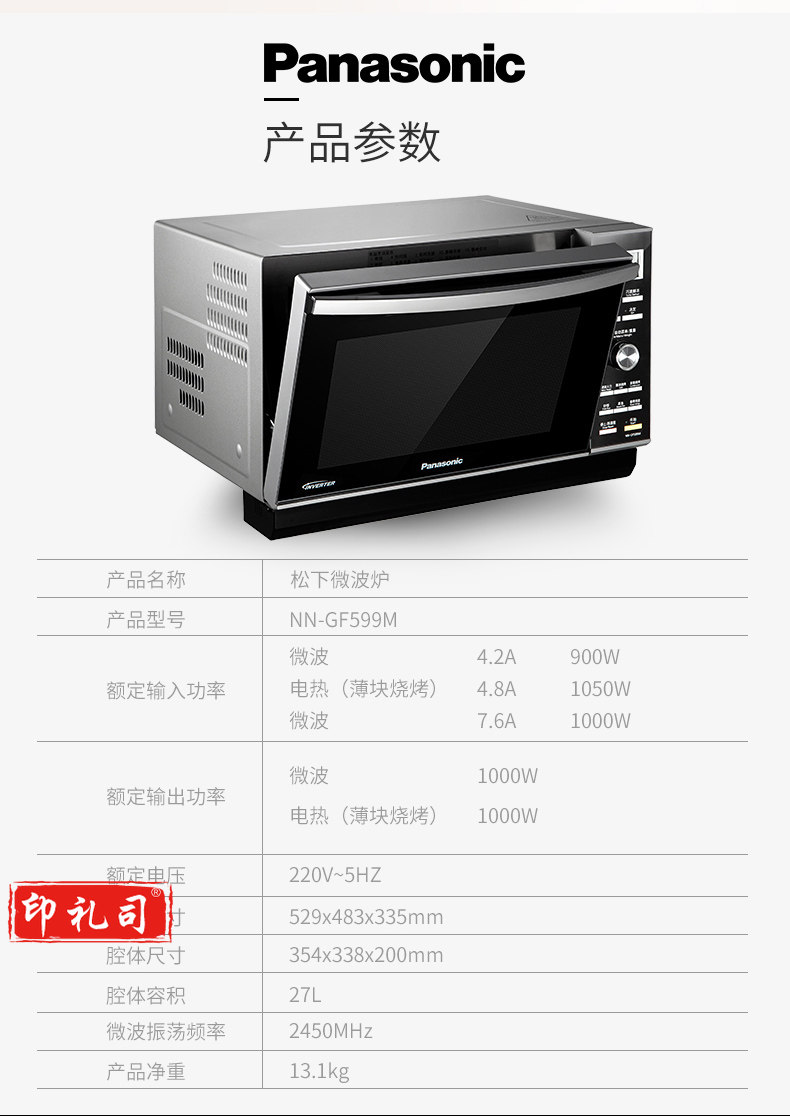 松下NN-GF599M 平板式变频微波炉 下拉门