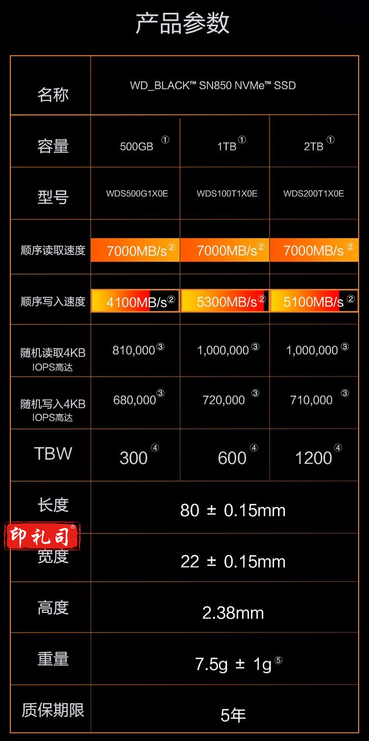 西部数据 BLACK SN850 NVMe SSD固态硬盘 M.2接口PCIe Gen4 SSD固态硬盘 1TB