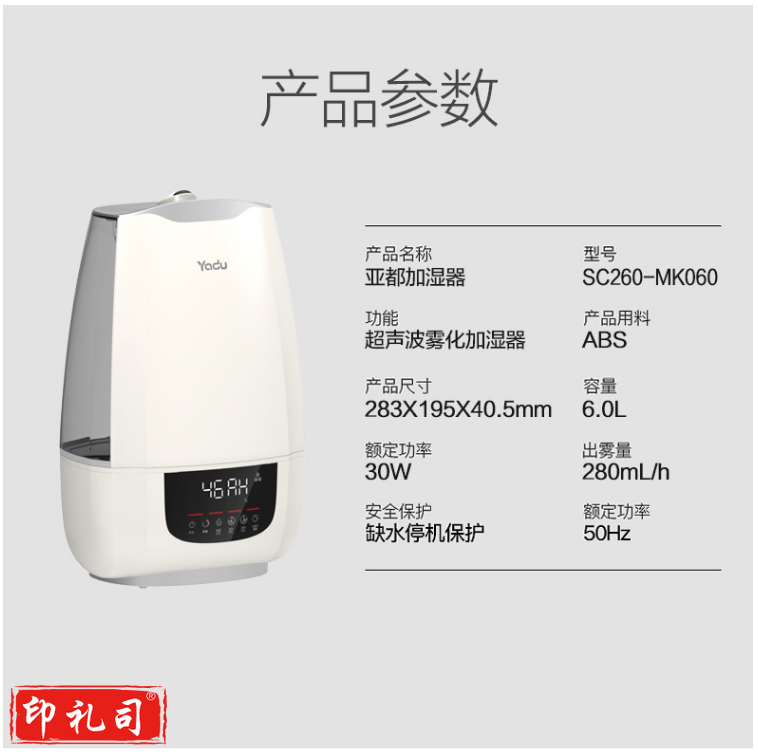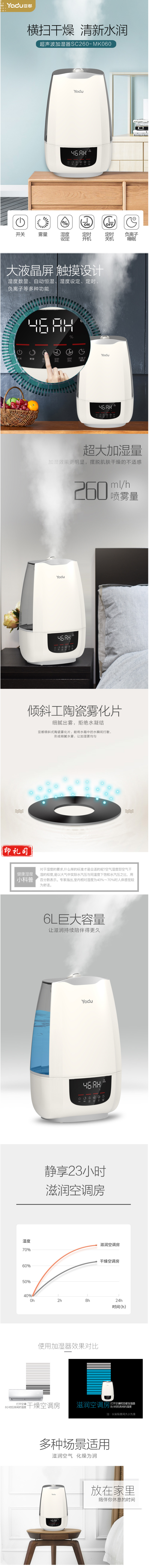 亚都(YADU)SC260-MK060 加湿器 静音静音母婴可用 湿度设定 6升大水箱