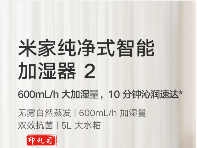 米家 小米无雾加湿器2 卧室家用办公室婴儿孕妇 600ml/h大雾量大容量大面积 纯净式蒸发轻音上加水智能互联