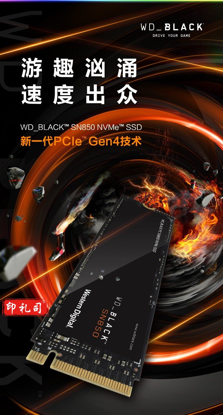 西部数据(WD) BLACK SN850 NVMe SSD固态硬盘 M.2接口PCIe Gen4 SSD固态硬盘2TB