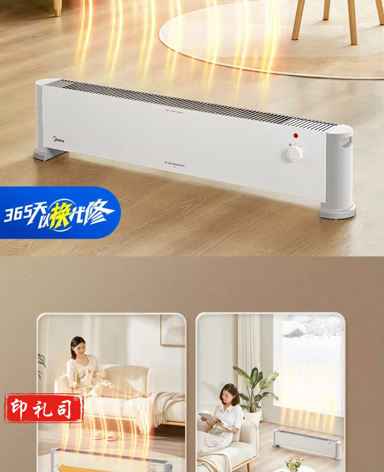 美的(Midea) HDV22UR 石墨烯踢脚线取暖器 家用电暖器 浴室IP24级防水电暖气片移动地暖客厅卧室 智能遥控款 石墨烯速热