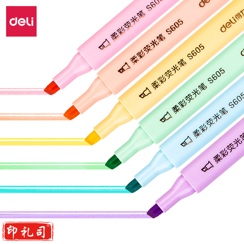 得力S605柔彩三角杆荧光笔(混)(盒)