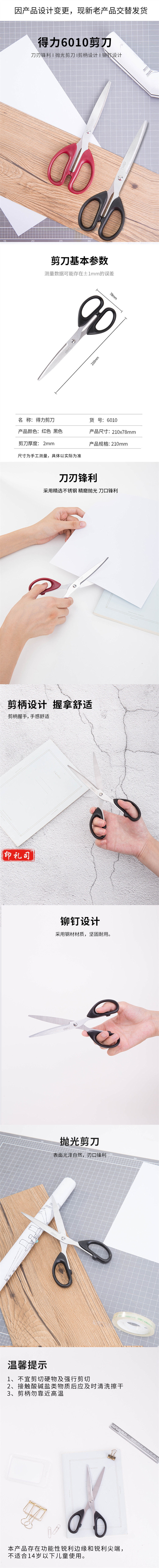 得力deli剪刀6010 210mm(红色、黑色)12把/盒(颜色随机)