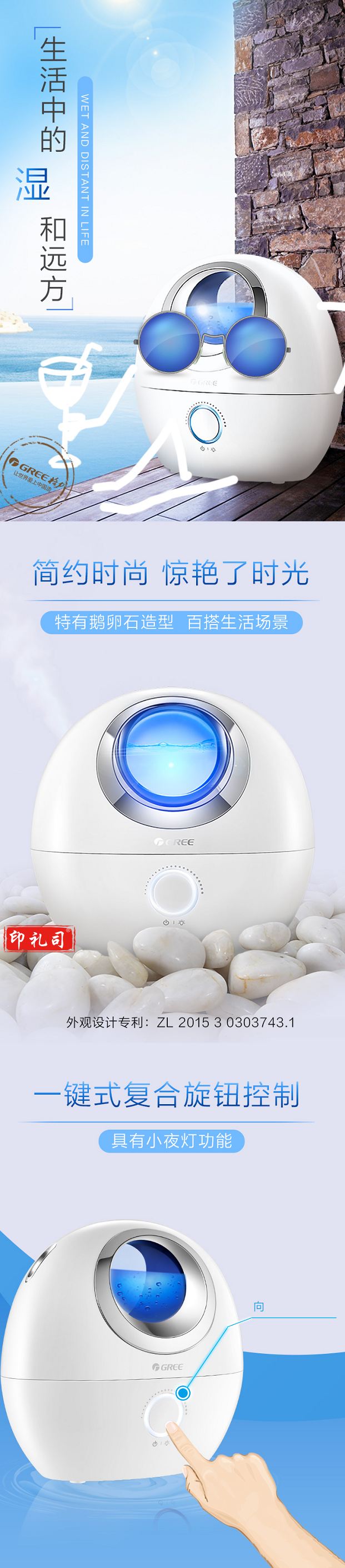 格力(GREE) SC-30X60 加湿器 3L静音迷你办公室 椭圆白