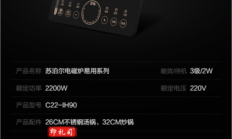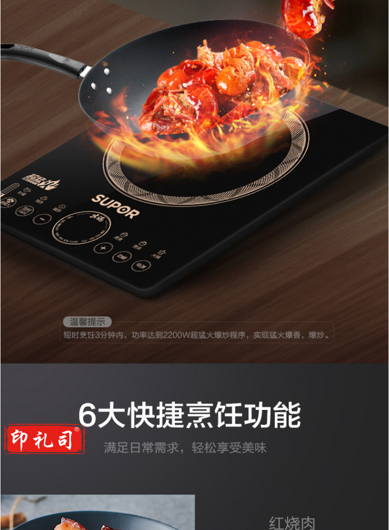 苏泊尔C22-IH90 电磁炉 大功率触控按键 八档火力 纤薄设计 定时功能电磁炉