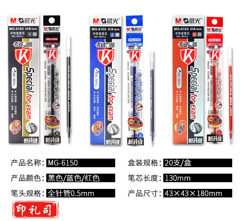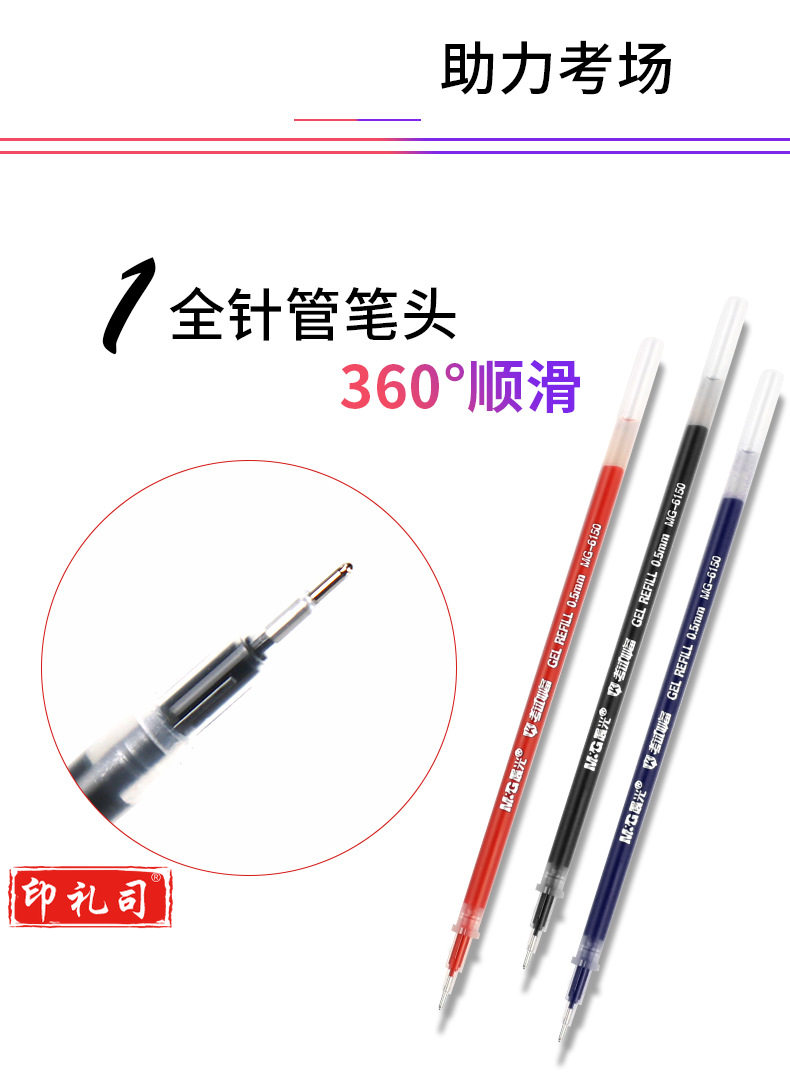 晨光(M&G) MG6150全针管中性笔芯/替芯 蓝色0.5mm 20支/盒