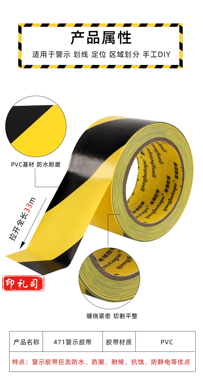 PVC黑黄警示警戒胶带(40mm*33M)斑马线胶带地标线胶带黄黑地板胶带标识胶带