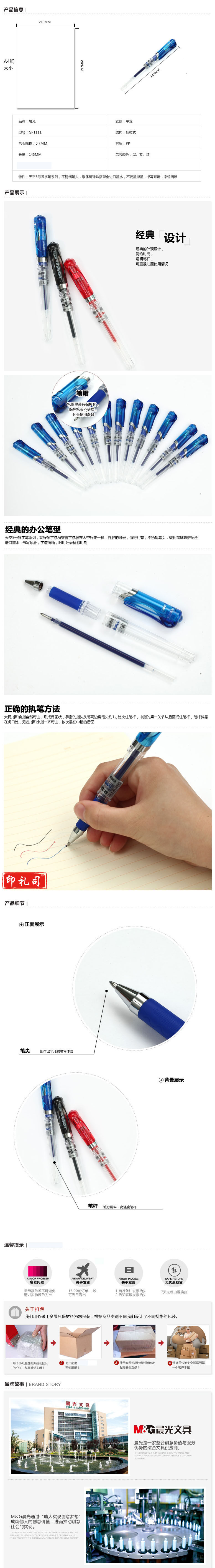 晨光GP1111 中性笔天空5号 蓝0.7 12支/盒