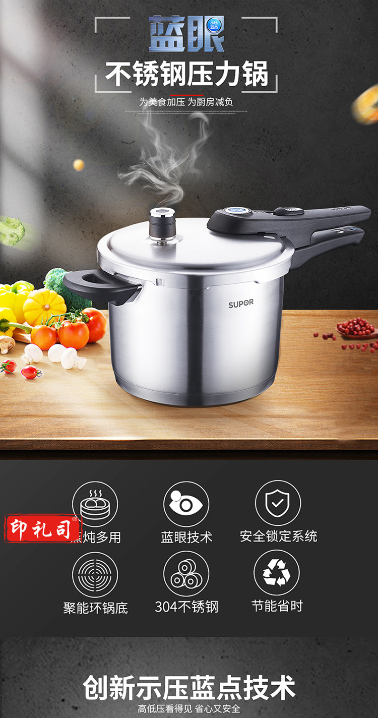 苏泊尔 YW22L1 6L 22cm 蓝眼不锈钢压力锅
