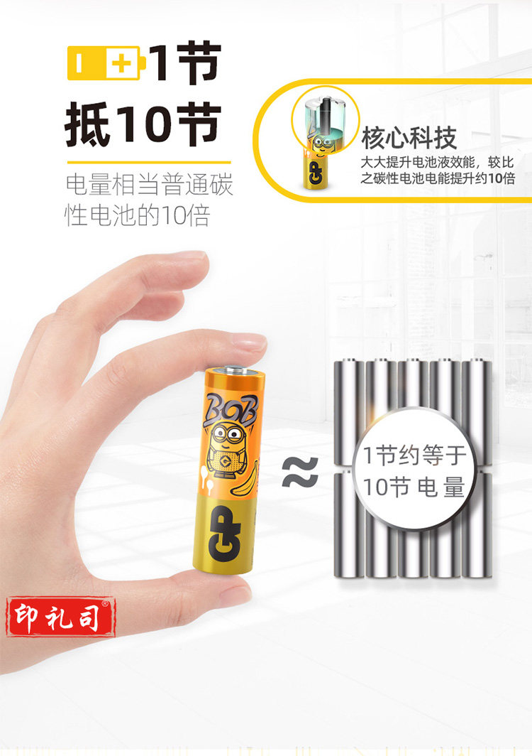 超霸(GP)7号碱性电池干电池40节装 小黄人限量装 适用于照相机/鼠标/玩具/剃须刀/门铃AALR6
