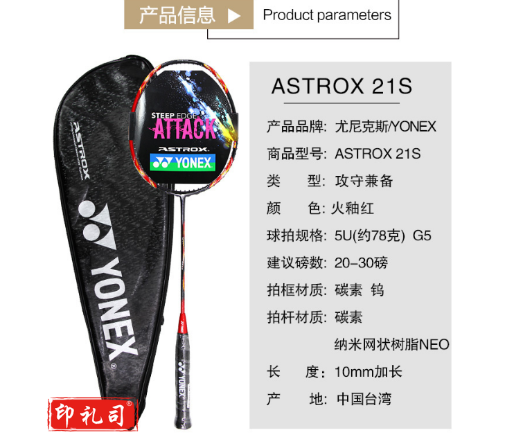 YONEX尤尼克斯羽毛球拍5U全碳素单拍天斧AX21S火釉红已穿24磅含手胶