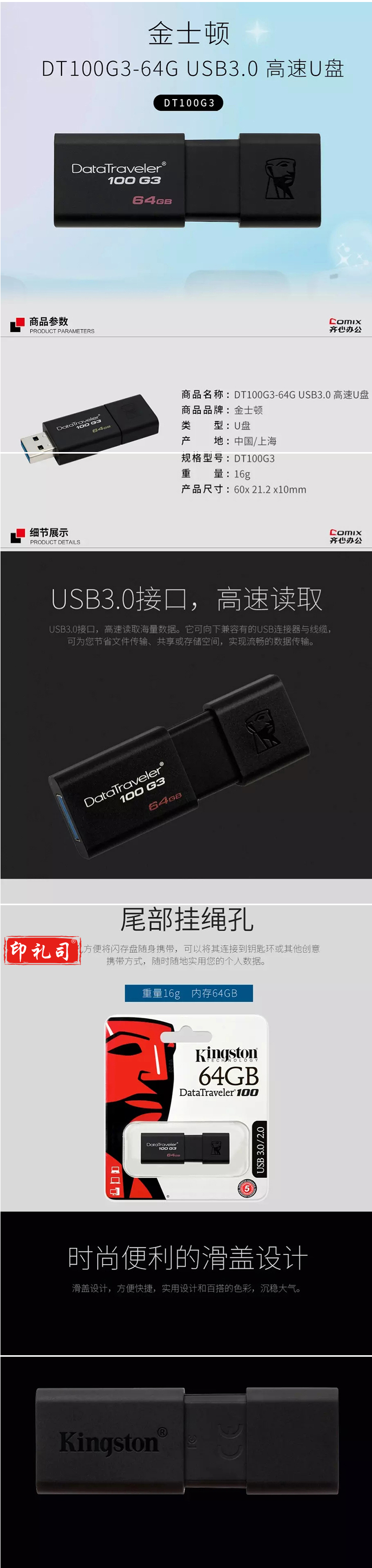 金士顿(Kingston)64GB USB3.0 高速优盘