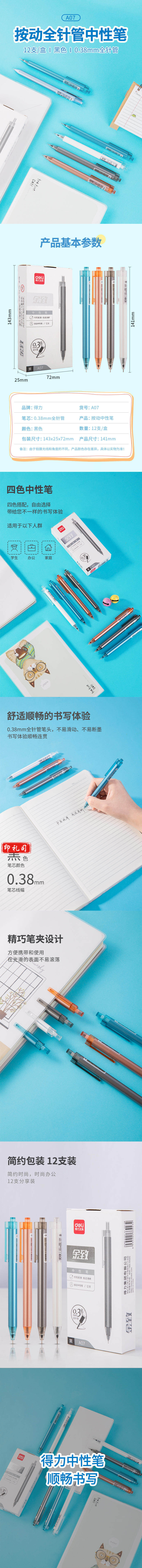 得力 A07 按动中性笔0.38mm全针管(黑)