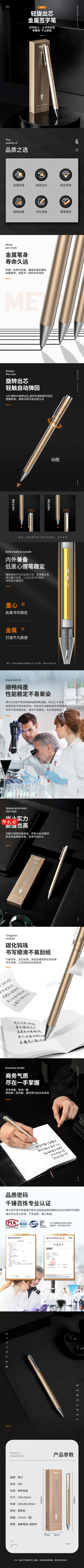 得力S99中性笔0.5mm子弹头(香槟金)(1支/盒)