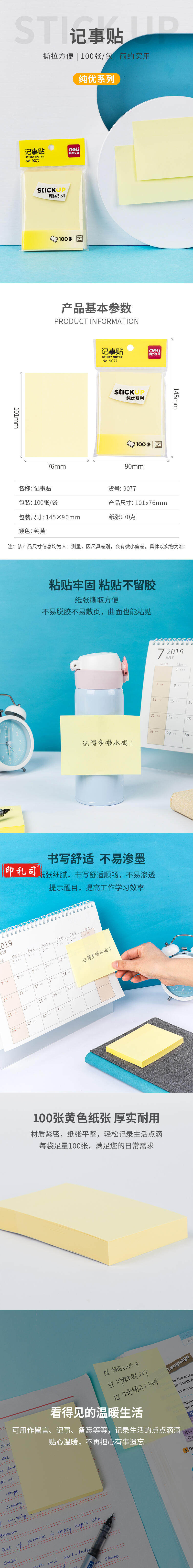 得力 9077 记事贴 (黄色)76*101mm(包)