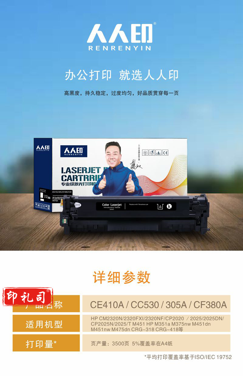 人人印CE410A 305A黑色易加粉硒鼓适用惠普HP M351a M375nw M451dn M451nw M475dn CF380A佳能CRG-318CRG-418