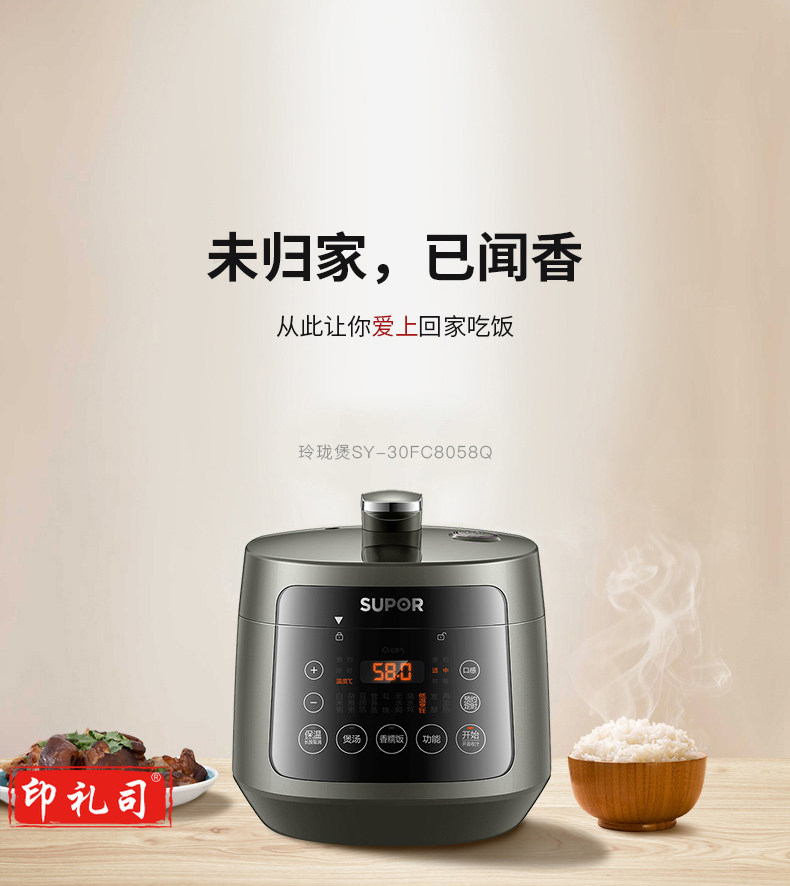 苏泊尔SY-30FC8058QS 电压力锅2-4人 电高压锅家用3L迷你球釜智能小玲珑煲